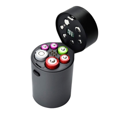 This cylindrical intelligent Charger Display Panel has 6 different sets of LED lamps (each set of 4 color LED lights, red, yellow and green blue), respectively, corresponding to six battery charging slot, do battery power energy percentage indication under charging mode or discharge mode A. In the battery charging mode of this product, 6 sets of batteries will have a corresponding LED light display. B. When this product is in the mode of charging battery, the LED indicator will display battery energy percentage for each slot battery and their charging indication, the red light represents 25% of the battery charged, The yellow light represents 50% of the battery charged, the green light represents 75% of the battery charged, and the blue light represents 100% of the battery charged ,When the LED light is in color flashes, it indicates that this battery is in this power energy percentage stage , the charger is charging it. C. In the discharge mode of this product can be used as a mobile power supply, only 18650 of the battery as the input source of the mobile power supply, only display power energy percentage of 18650 battery in the first slot or the second slot. D. In the discharge mode of this product, only 18650 of the battery as the input source of the mobile power supply, when the first slot or the second slot has placed in 18650 batteries, 6 sets of LED lights flash instantly ,after flashing a second and then extinguished, this is the product's own detection process. E. When the discharge mode of this product as a mobile power function, the LED on the display panel only display 18650 battery power energy percentage in the 1th and 2nd slot (only 18650 batteries as the input source of the mobile power supply, the other 3,4,5,6 slot battery is not used as the input source of the mobile power supply, so in the discharge mode, the display panel with its corresponding LED 3, 4,5,6 slot does not do power energy percentage display), when the 1th slot or the 2nd slot has 18650 batteries, cover the lid, LED lights in full light 1 seconds (this product itself is in self-test), display panel will display the corresponding slot 18650 battery power, when the USB output is detected connected to the corresponding load electronics product,the USB port will continue to power the electronics product until the 18650 power energy used up and the LED light on the display panel is extinguished |
